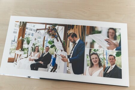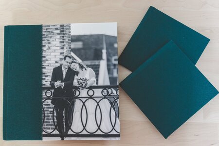 De foto’s van deze fantastische trouwdag zijn inmiddels vereeuwigd in een prachtig trouwalbum. Richard en Maaike kozen voor een 25 x 25 cm album in donkergroen linnen met een fotocover. Hun ouders ontvingen een persoonlijk mini-album in dezelfde kleur groen.